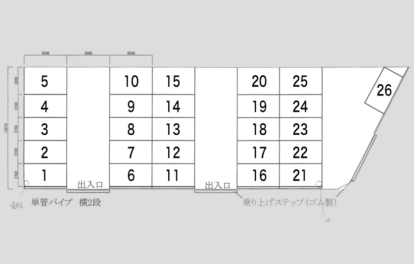 駐車料金 | 14,000円+消費税/月(1,5400円)トラック不可 No.19は16,000円(税込)/月 |